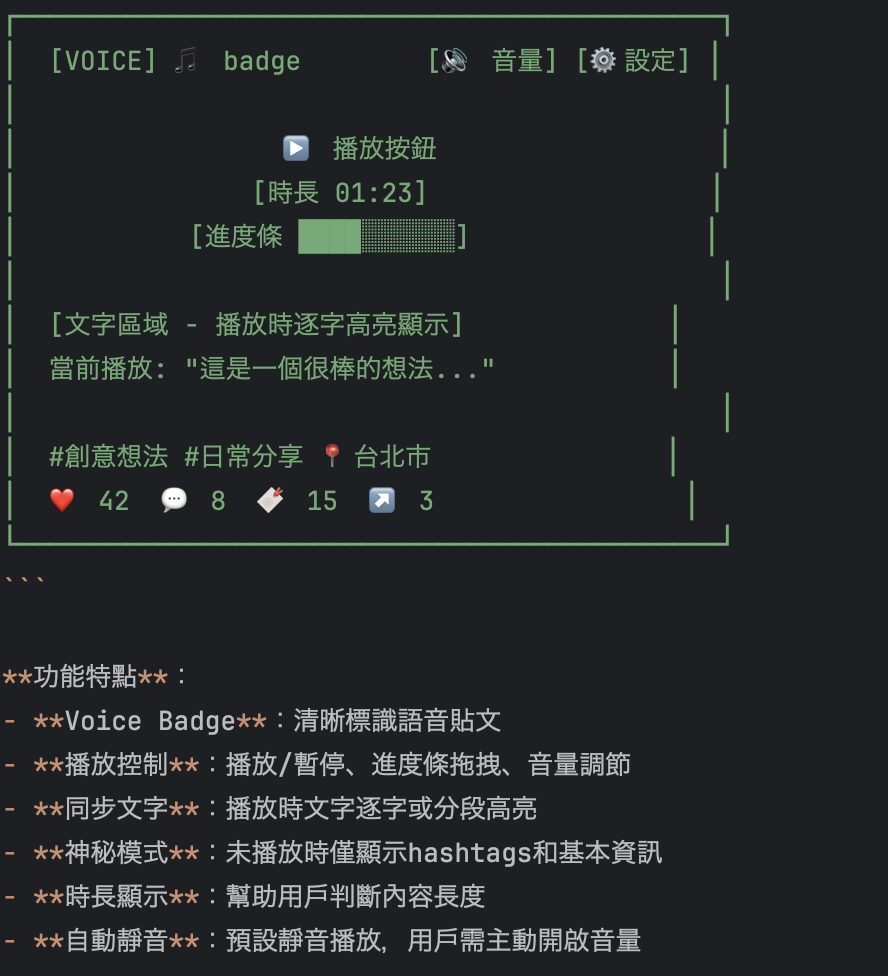 <span className="text-[1.35rem] font-semibold leading-[1.65]"><span className="text-amber-500">「語音貼文」</span></span> 以下是影片: