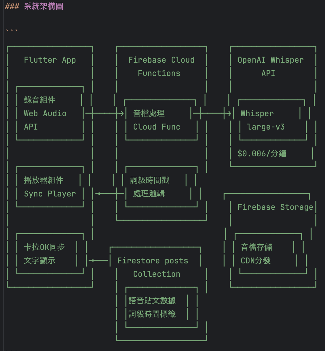 知道要作這個功能之後就意考慮到如何呈現 如何使用,如何把聲音檔轉成文字,文字有了怎麼讓他有咖拉OK的效果,而且資料如何儲存等等。在實際叫AI動手之前,跟他討論了很久時間,最後定稿出規格書跟介面如下: